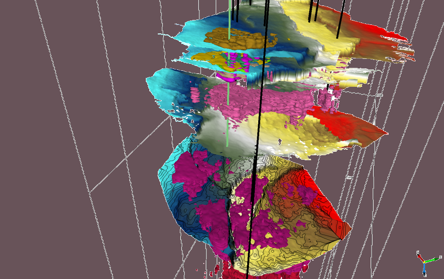 Looking for pay is what it is about and understanding the porosity slabs that have been detected in proximity to known and future production is crucial in seeing the big picture in understanding if our calibration to known production is valid throughout the volume. Making Geobodies of what we think are high porosity areas with fluid anomalies is used for report grade fast track of and volumetric estimates of potential reserves.